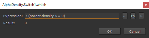 A value of -100 in the density slider becomes a value of 0 in the Gamma1 node. A value of 0 in the density slider becomes a value of 1 in the Gamma1 node.