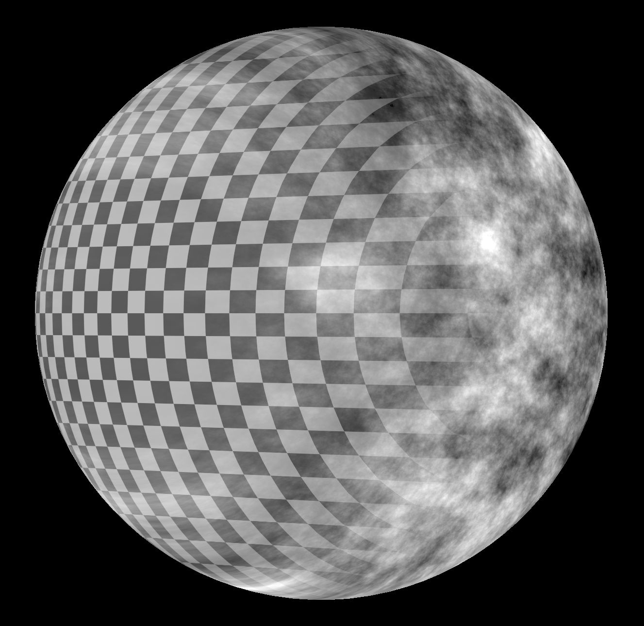 A projected texture being stretched along the sides of a sphere.