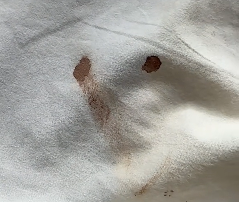 Over time, as the blood dries, the hemoglobin breaks down, and the blood can darken further, eventually turning brown or even blackish.