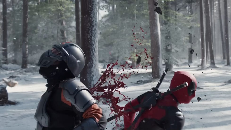 Take the frame below from Deadpool & Wolverine, for example. Had all of the blood been angled down, going over Deadpool’s dark and red outfit, it would have been much more difficult to read.