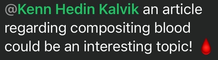 “An article regarding compositing blood could be an interesting topic! 🩸”