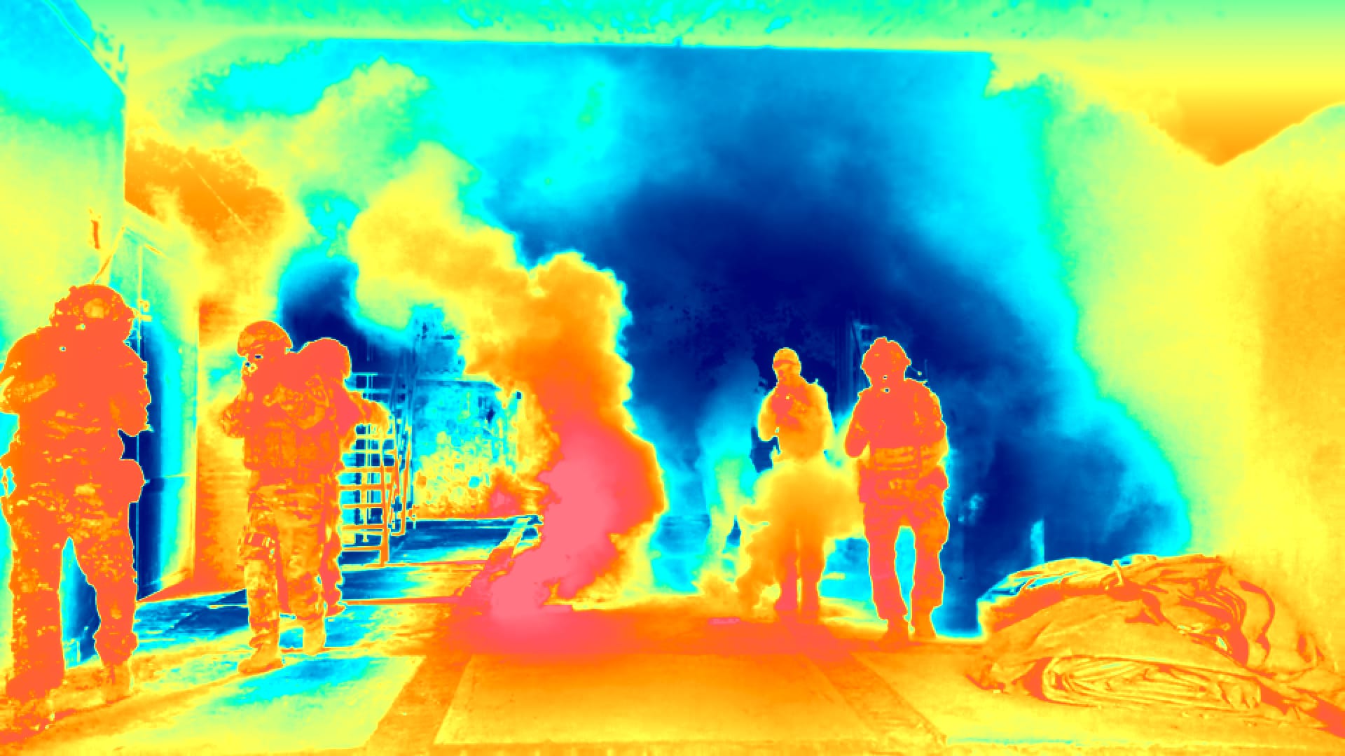 In the footage, we can see soldiers entering and securing an area, with smoking flares on the ground. Which means, we already have two clear sources of heat: the soldiers, and the flares.