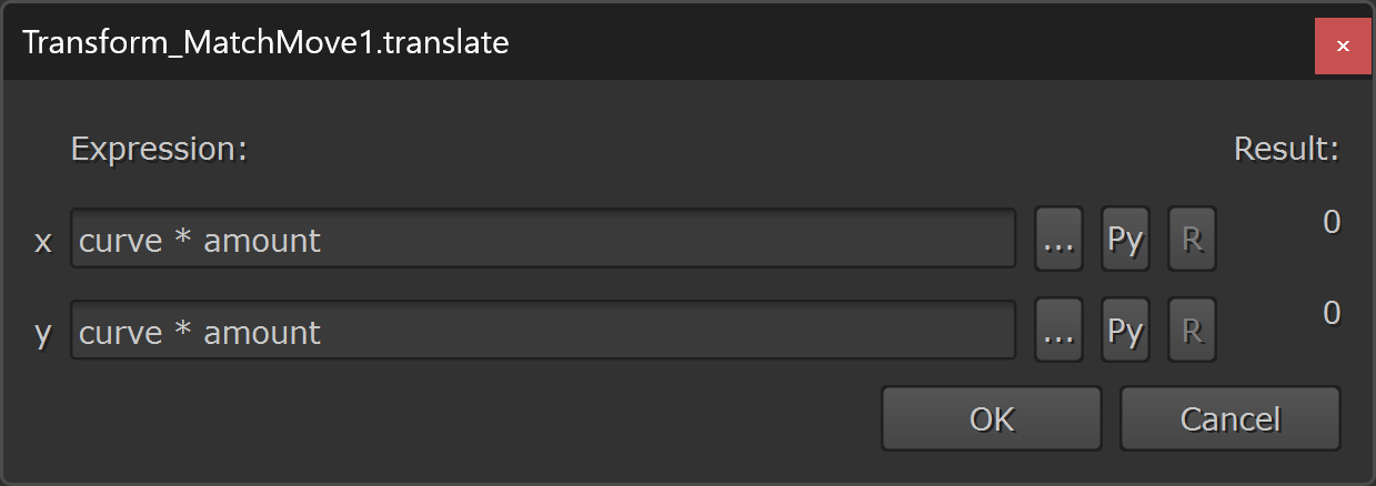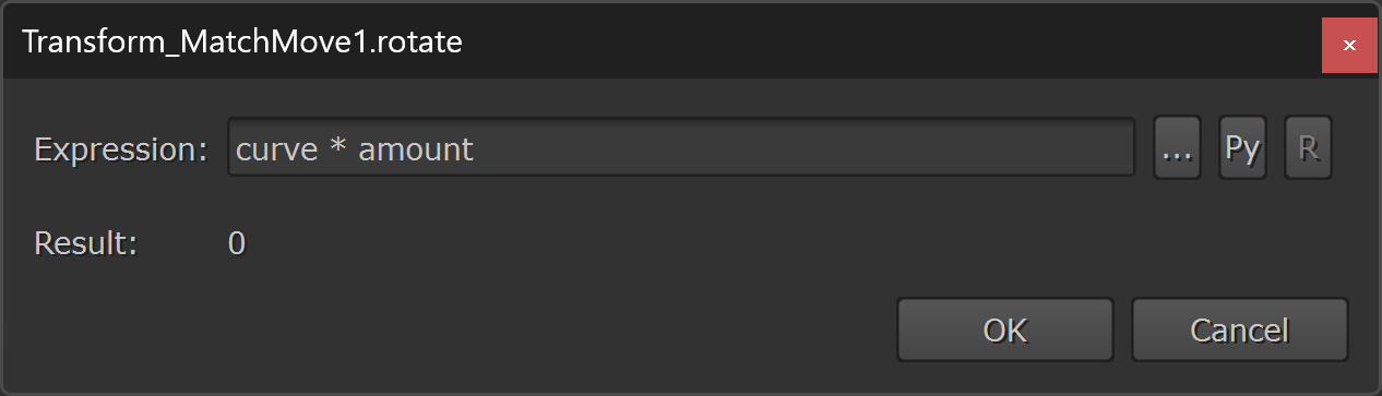 – In the expression above, curve (which is a standard Nuke term that’s used in expressions) is referencing the baked animation curve’s value on the current frame, and amount is referencing the value that we set in the amount knob that we created earlier.