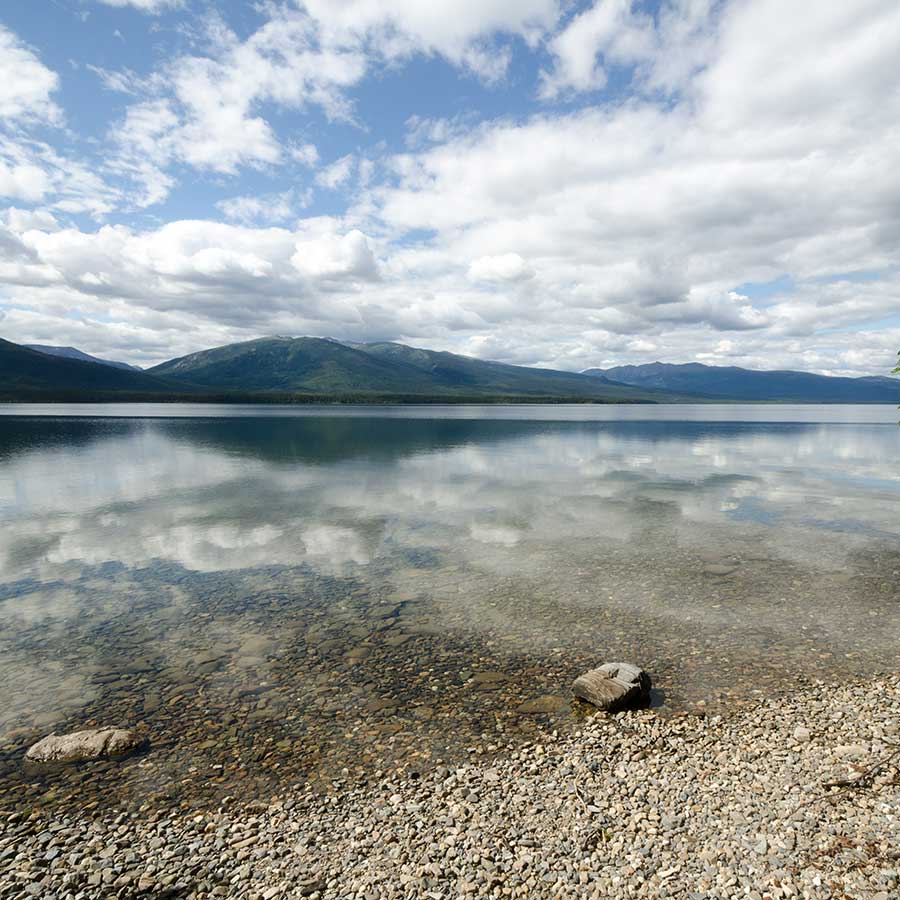 In the example image below, there is not much specular reflection on the surface of the water close to us. That’s because we’re looking down at a shallow angle to the surface normal of the water surface. The further out on the lake you look, the more the viewing angle increases, and the more intense the specular reflections get.