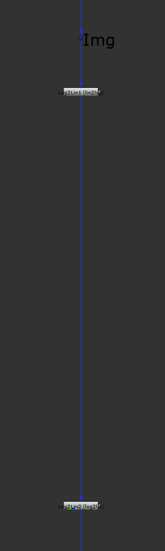 Make a copy of the Log2Lin node and connect it to the first one. Change the copy’s operation to log2lin. This should return you to the original image. Open up some space between the two Log2Lin nodes, because all the next steps will happen between them.