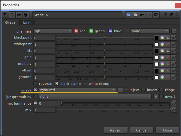 Then, in the Grade node, colour pick the darkest part of your CG for the blackpoint value: Enable the colour picker next to the blackpoint value, and press Ctrl/Cmd + Alt + Shift and left-click-and-drag over the darkest area of the CG in the Viewer to sample the black level.