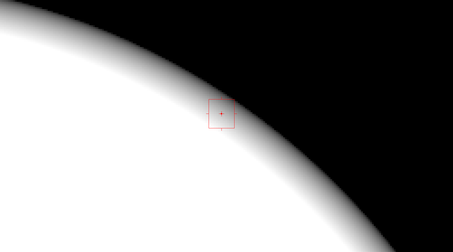 By connecting the following mask and ticking fringe, the grading would only be mixed by the thin area between the fully white and fully black values. (Partly marked with the red sample box). Effectively turning this mask...